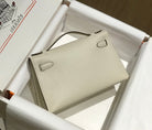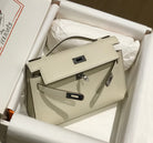 HM KELLY POCHETTE 22CM WHITE BEIGE SWIFT SILVER HARDWARE