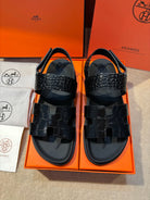 HM Men's 25 Chypre Sandals Black Calfskin 673762