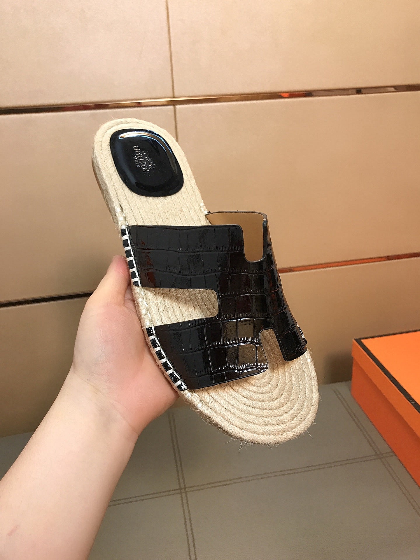 HM Men's Antigua Espadrille Black Embossed Cowhide 704130
