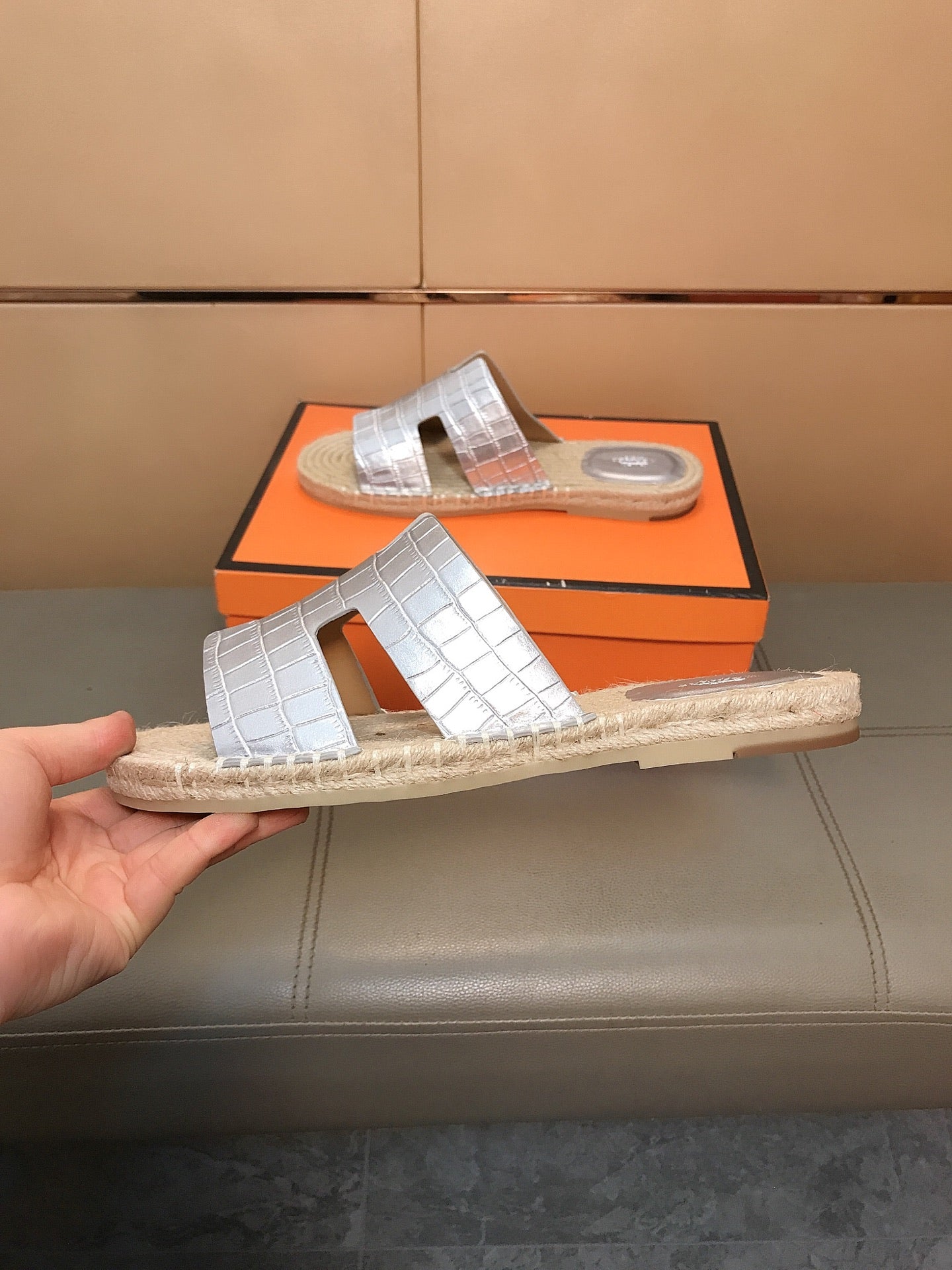 HM Men's Antigua Espadrille Silver Embossed Cowhide 704129