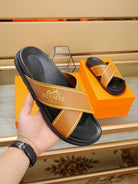HM Men's Cross Strap Slide Orange Cowhide 544098