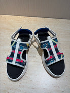 HM Men's Gate Sandal Blue Calfskin Printed Fabric 655431