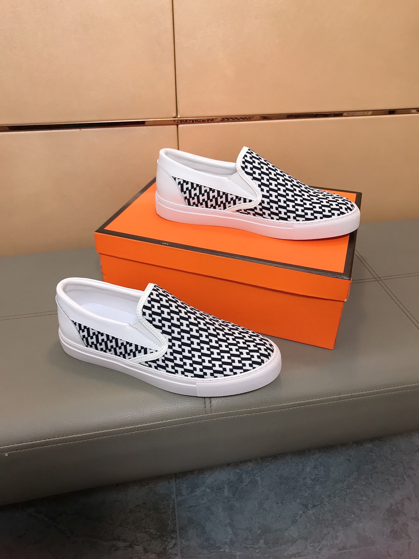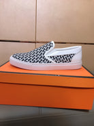 HM Men's Loafer White Black Printed Fabrics Rubber 590008