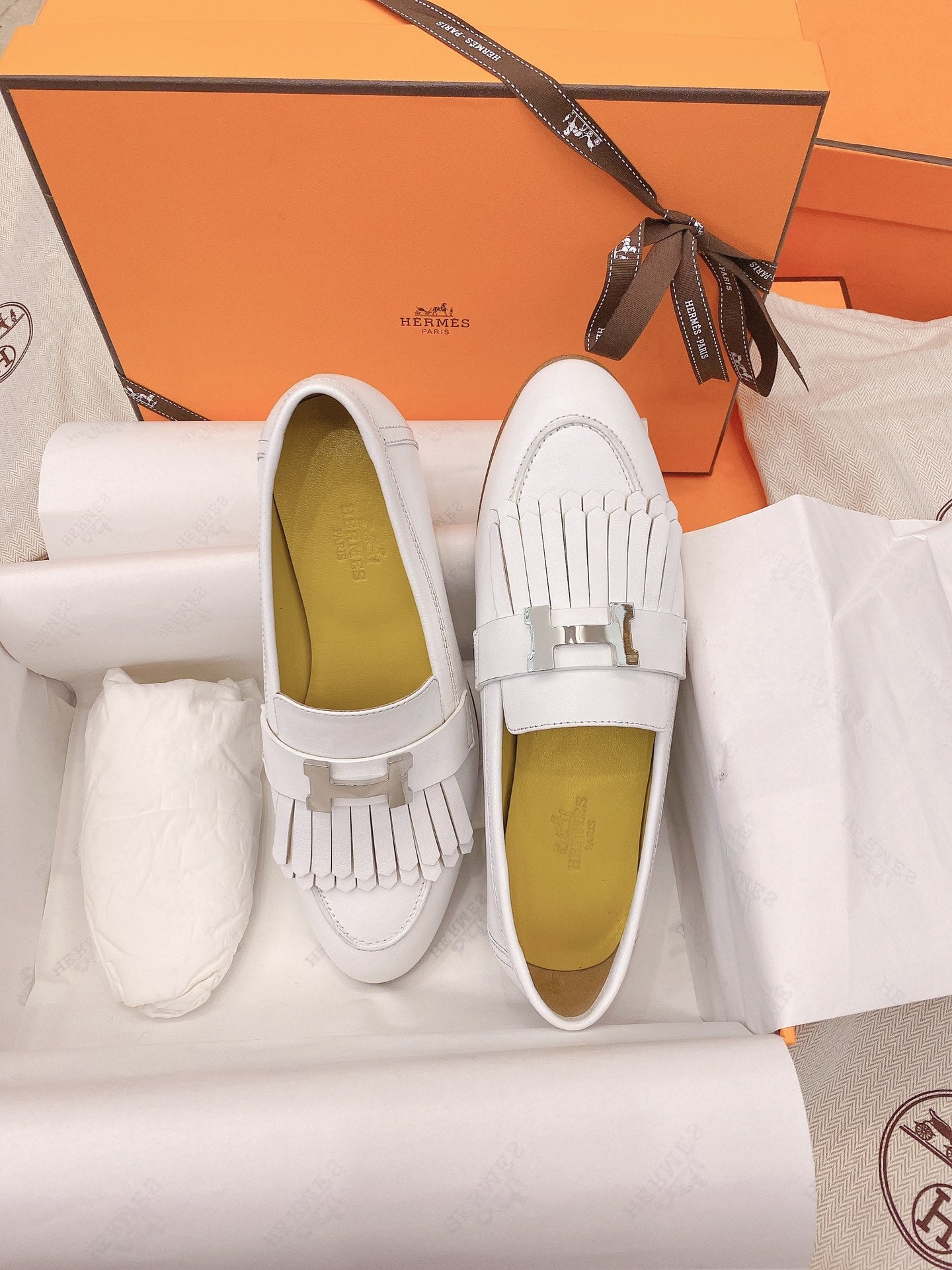HM Mocassins Royal Loafers White Goat Leather 348019