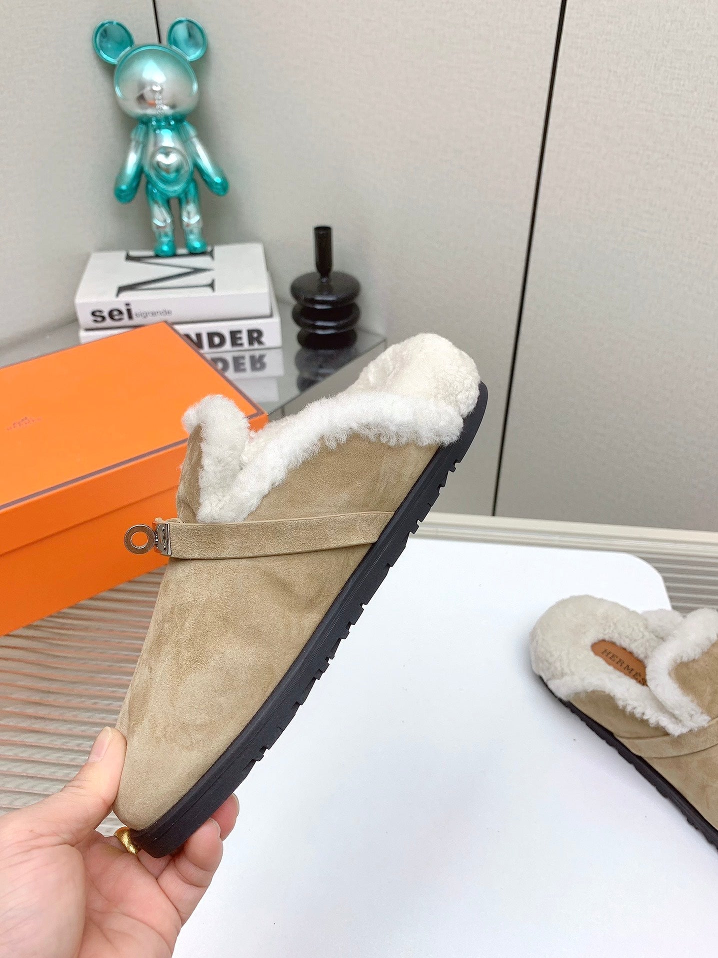 HM Mule 30mm In Light Brown Beige With Fleece And Suede Lining 971396
