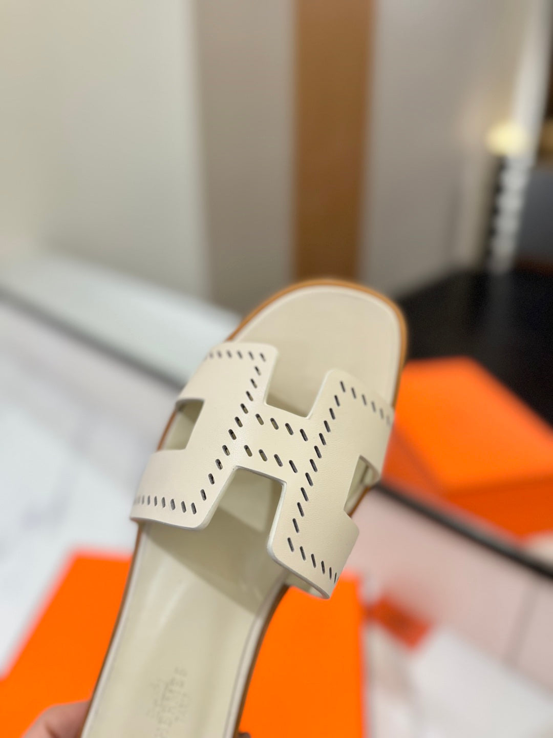 HM Oran Sandal Pearl Ivory Perforate Cowhide 294878