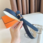 HM Pink Gold Mors H buckle & Reversible 24 mm belt Blue Beige leather 125370