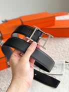 HM Silver Hadrien Reversible 38mm Belt Black Leather 188082