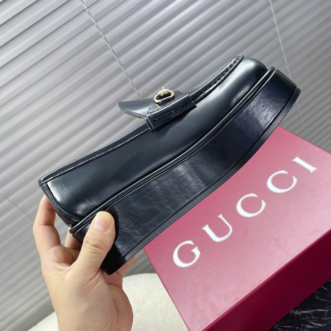HORSEBIT PLATFORM LOAFER IN BLACK CALFSKIN
