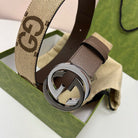 INTERLOCKING G BLACK SILVER BUCKLE 40MM BEIGE CANVAS