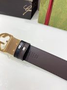 INTERLOCKING G GOLD BUCKLE 37MM BLACK BROWN LEATHER