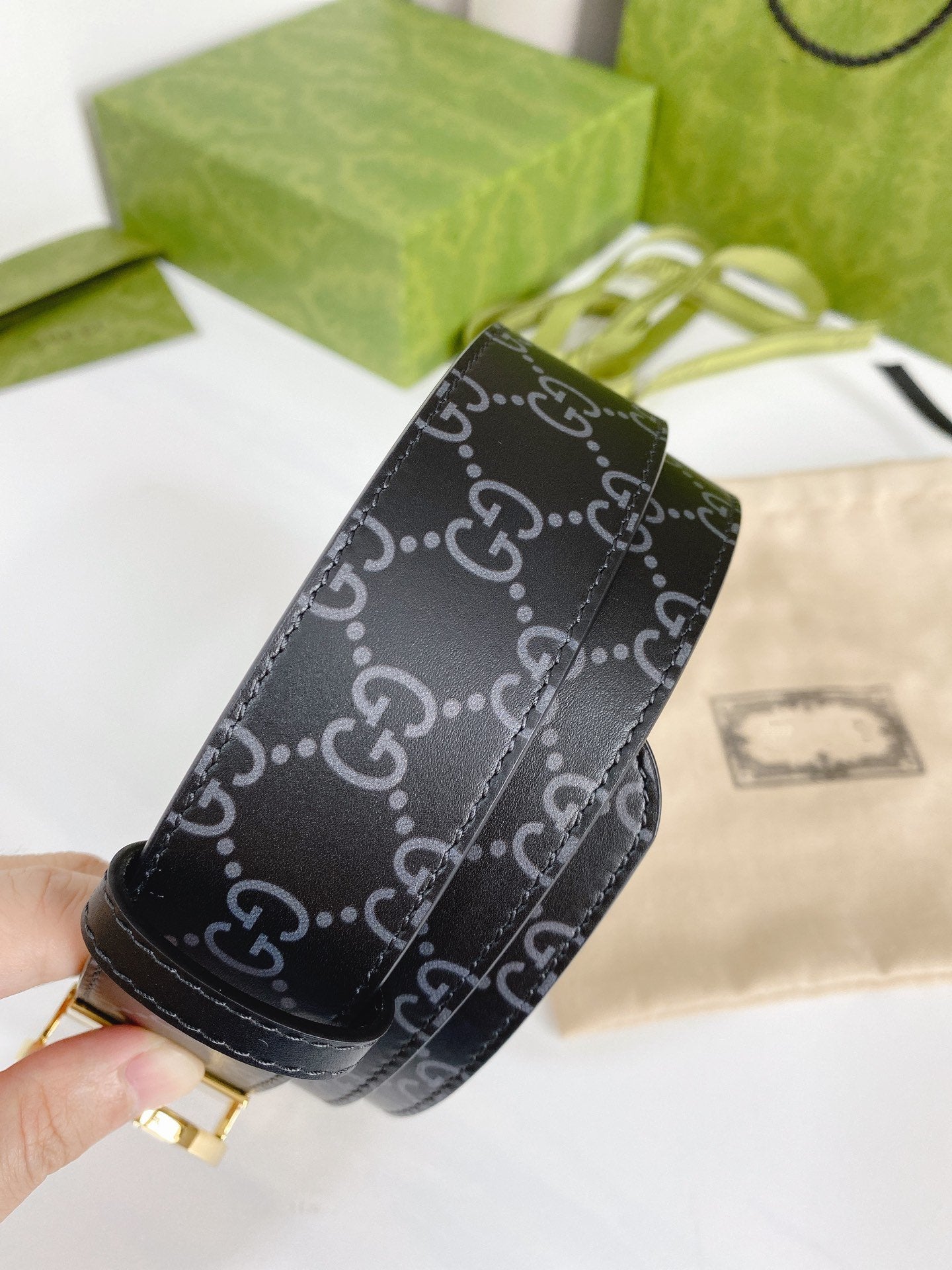 INTERLOCKING G GOLD BUCKLE 38MM BLACK LEAHTER MONOGRAM