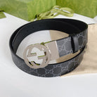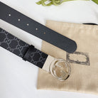 INTERLOCKING G SILVER BUCKLE 38MM BLACK LEAHTER MONOGRAM