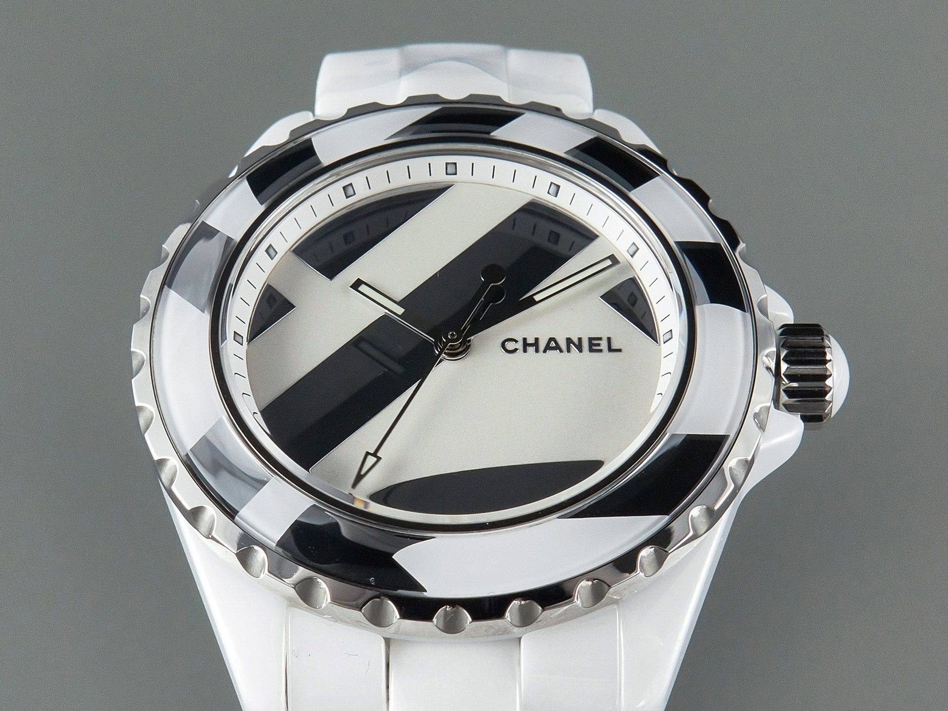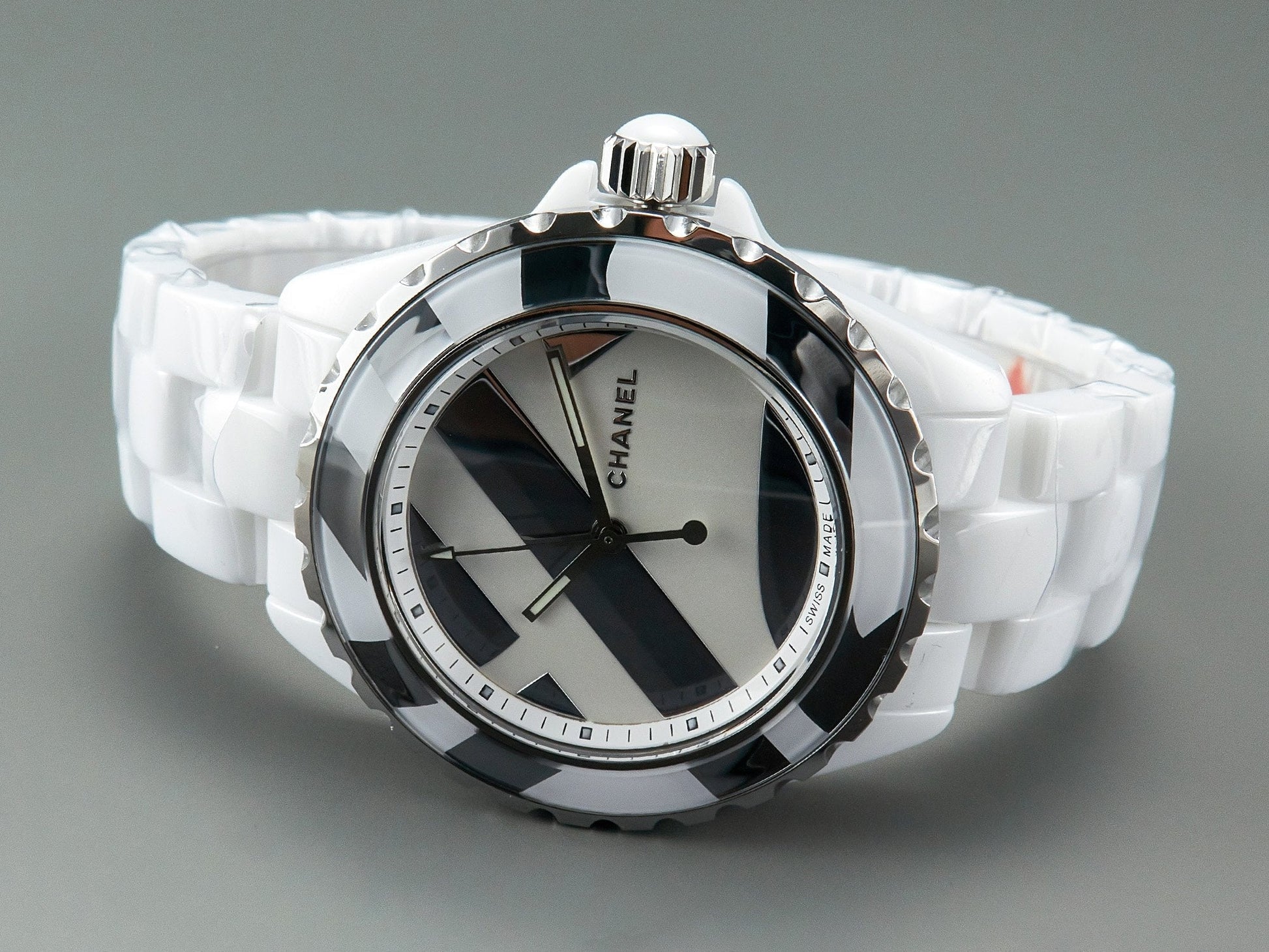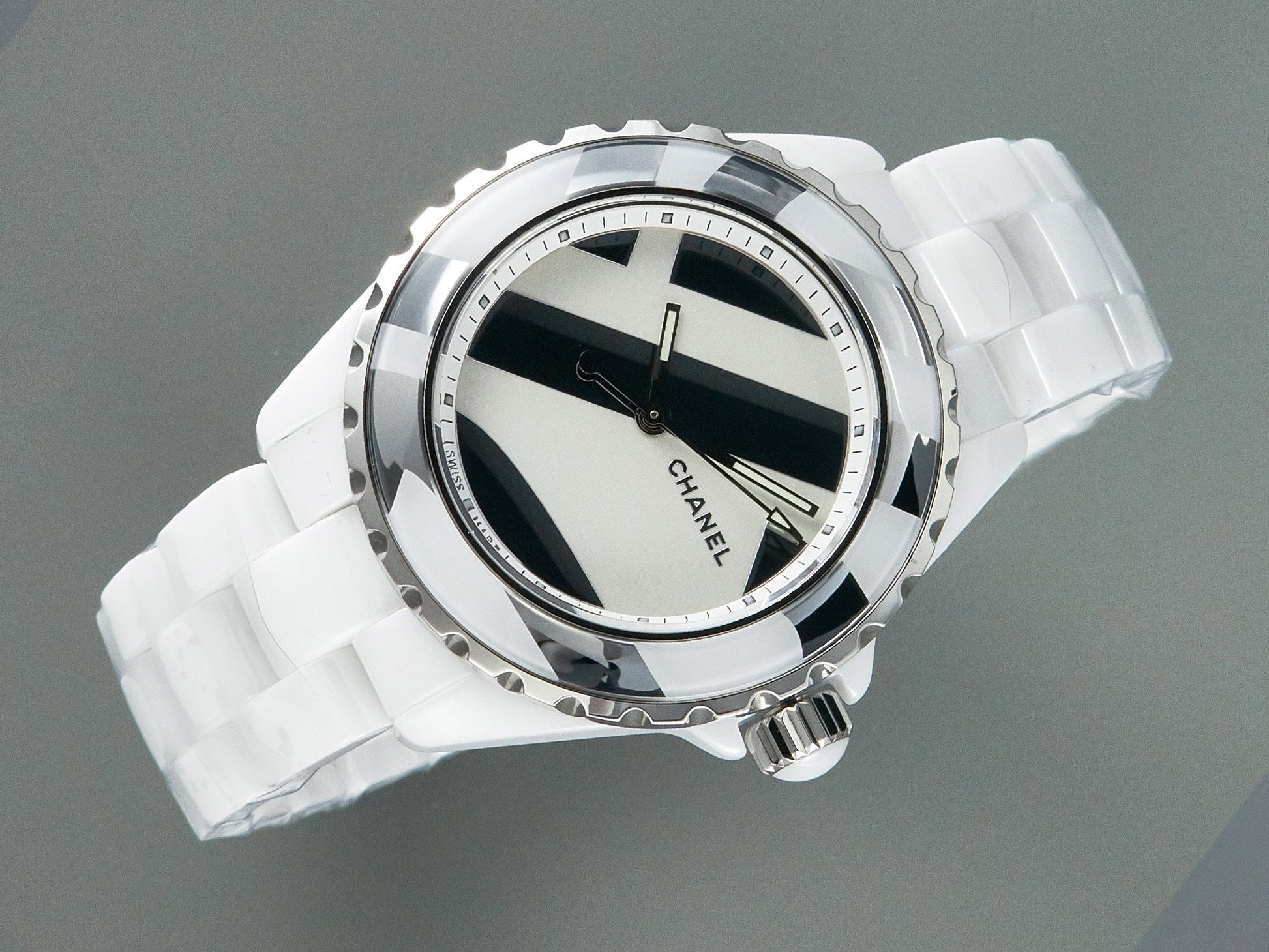 J12 38mm Automatic Limited Untitled H5582 White Ceramic Black White Dial