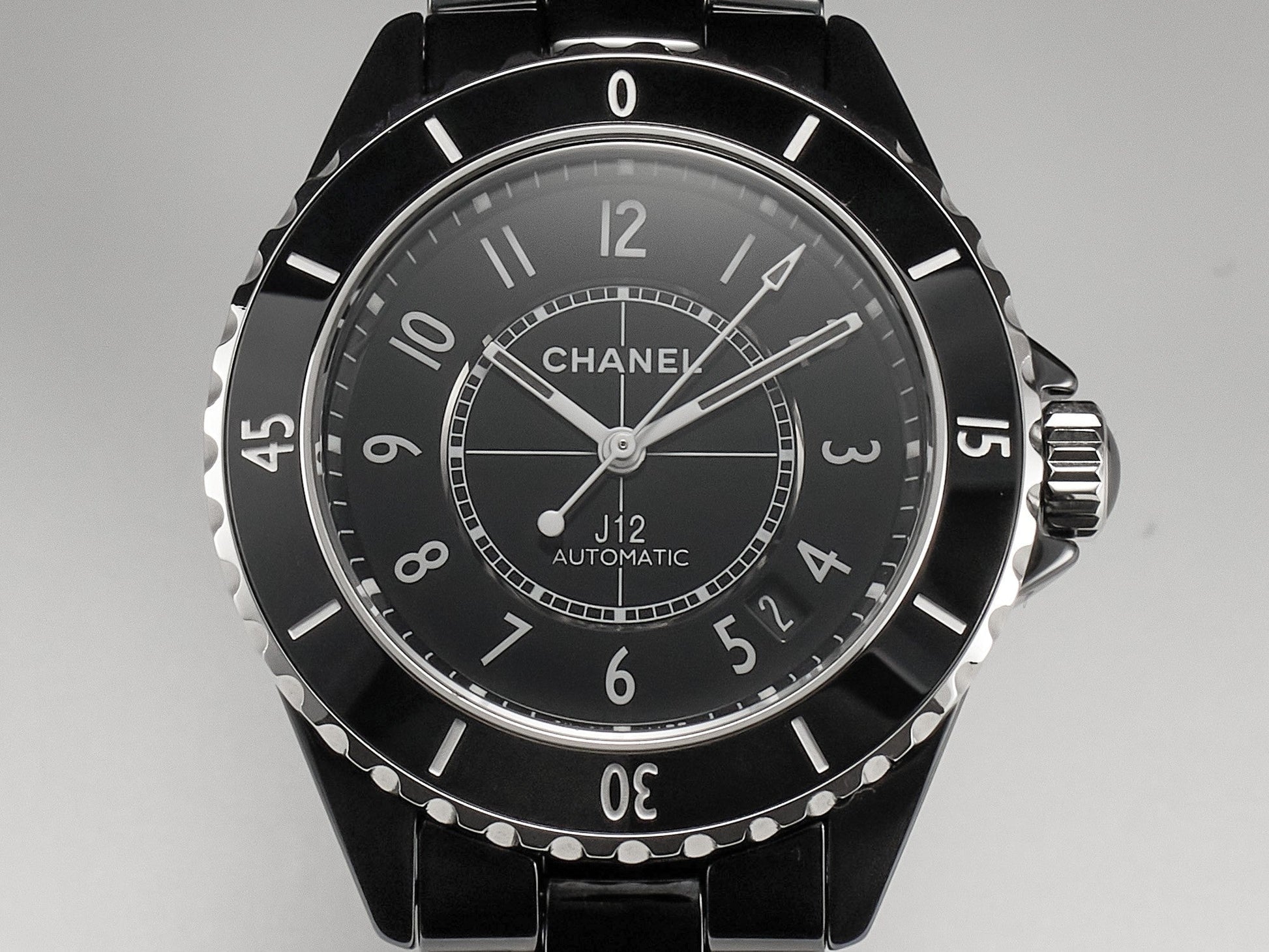 J12 Date Automatic Black Ceramic White Numerals Black Dial Black Steel Hands