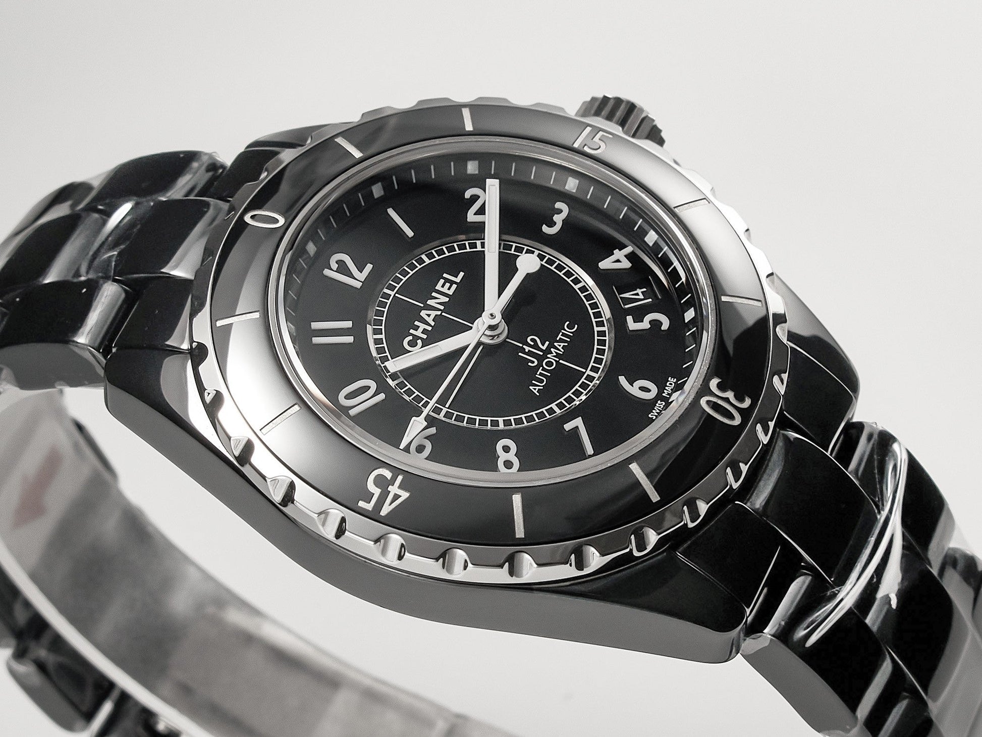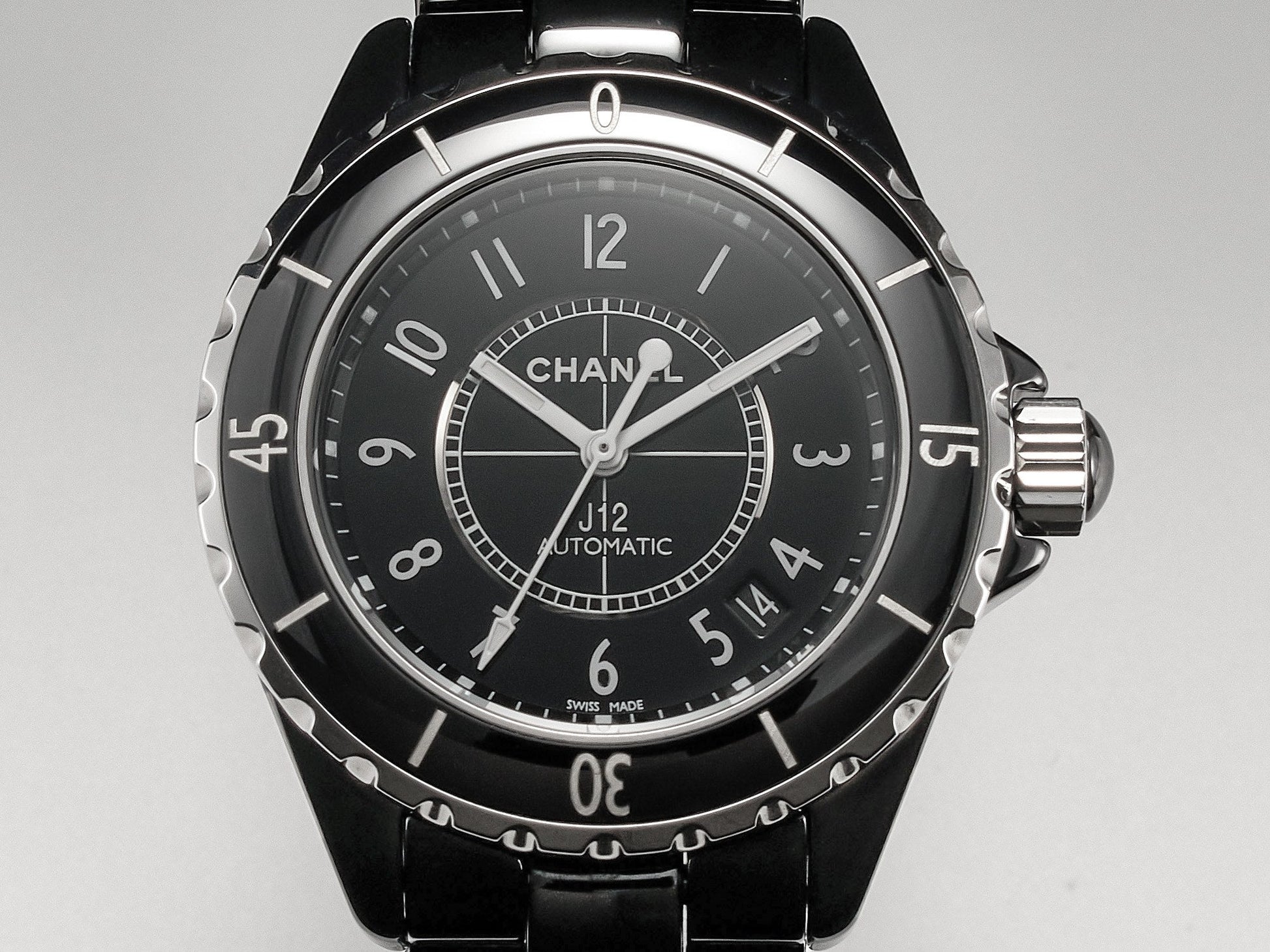 J12 Date Automatic Black Ceramic White Numerals Black Dial White Steel Hands