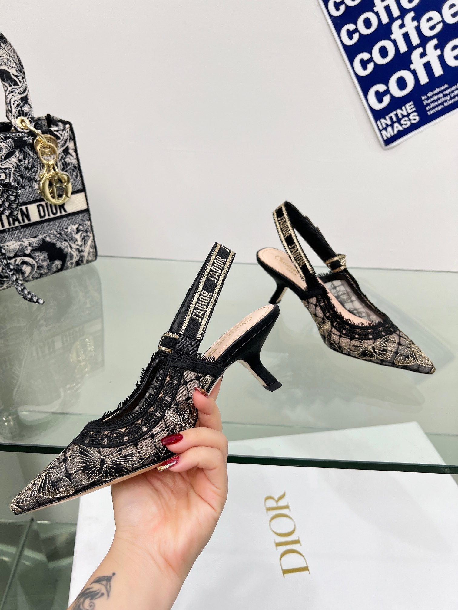 J'Adior Slingback Pump 65mm In Black Lace Fabric 100836