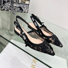 J'Adior Slingback Pump In Black Floral Embroidered Lace Fabric 100848
