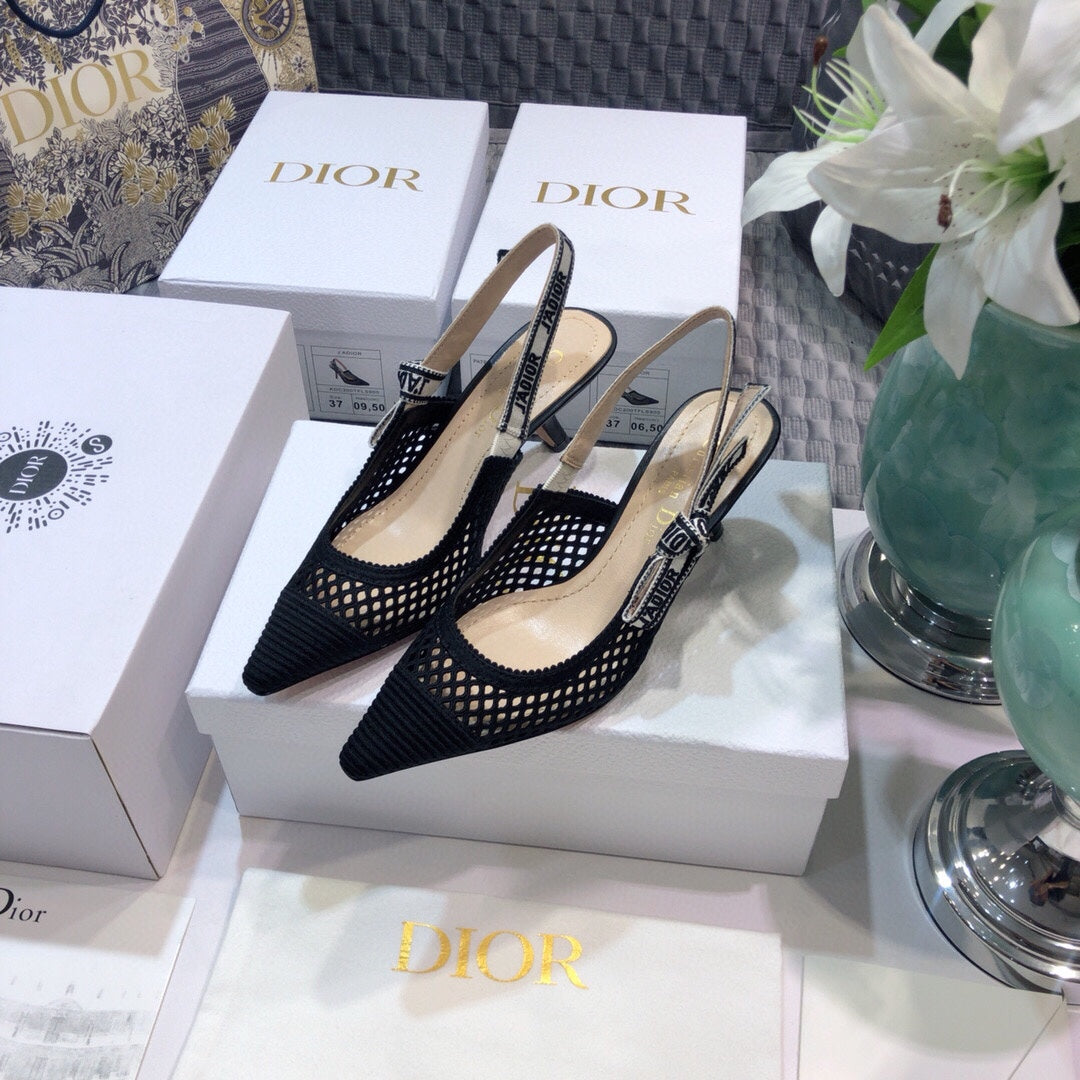 JAdior slingback pumps 65 transparent mesh black embroidered cotton
