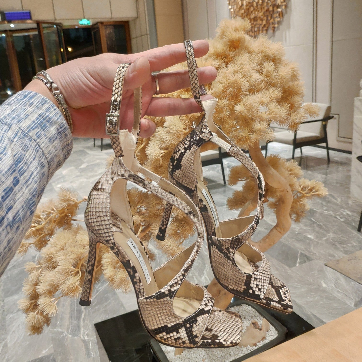Jimmy 25 Azia 95 Beige Snakeskin Pattern Lambskin 240078