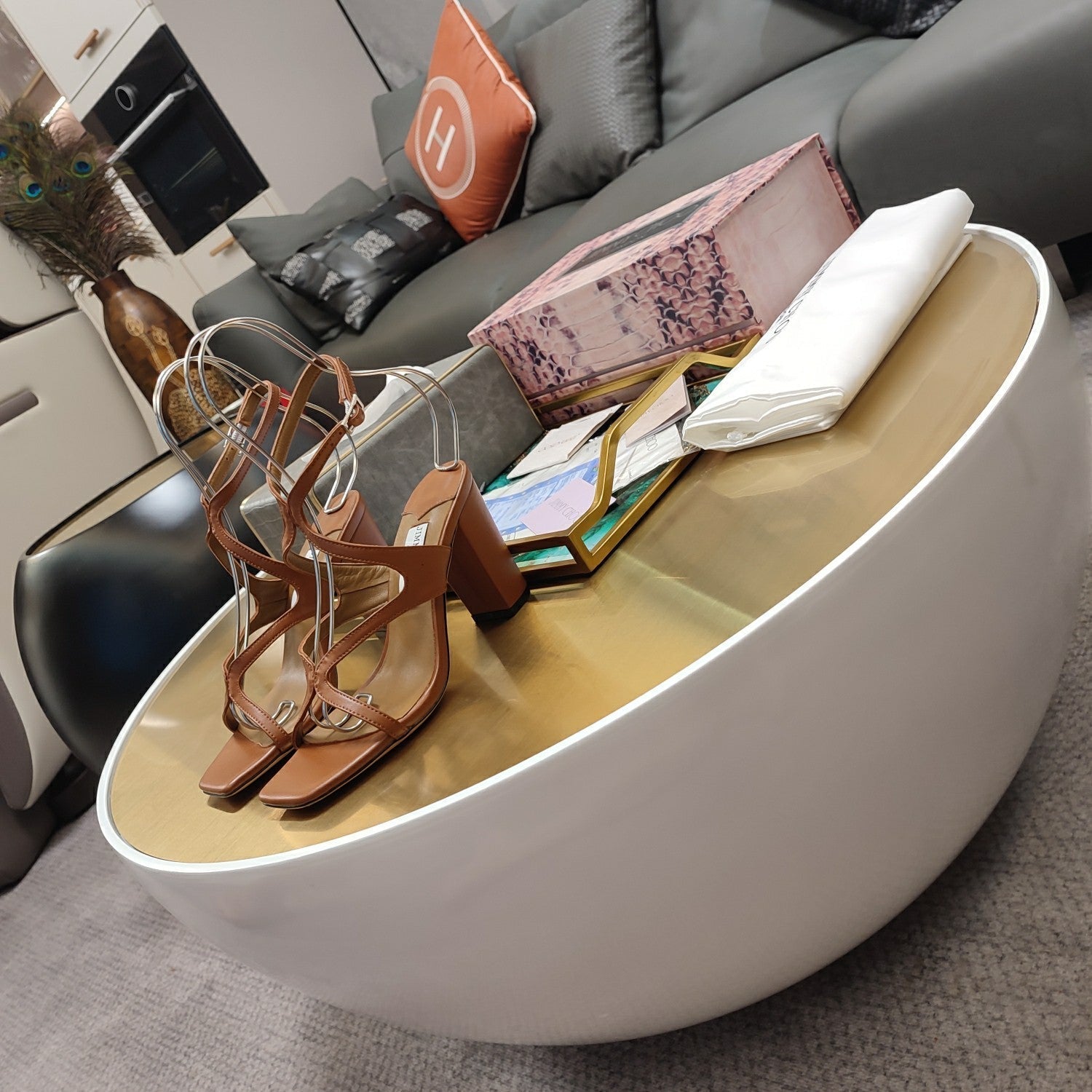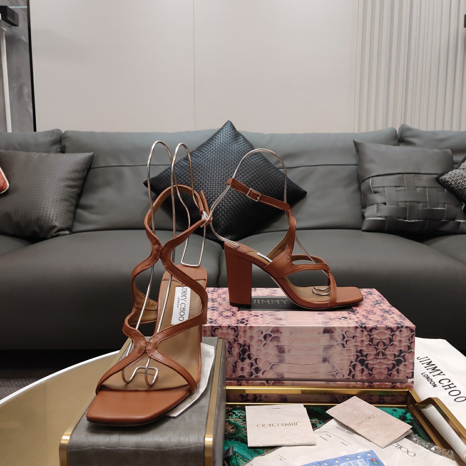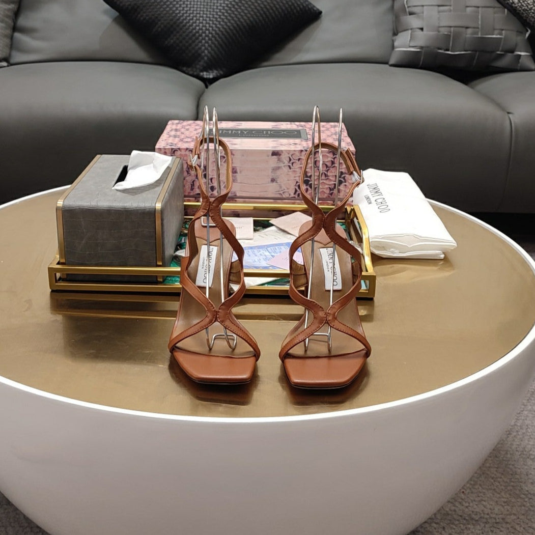 Jimmy 25 Azie Colorblock Sandal 11CM Brown Calfskin 240110