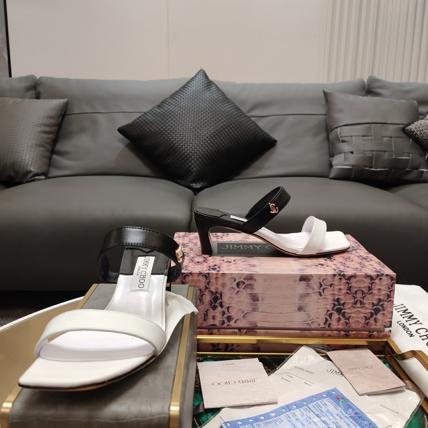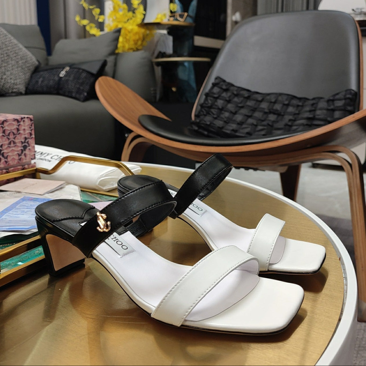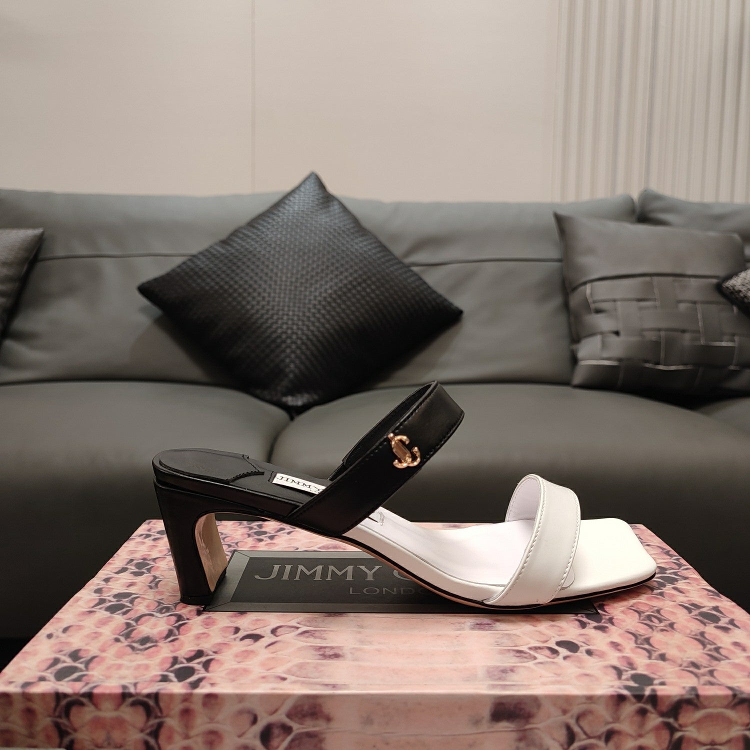Jimmy 25 Kyda Nappa Sandals 55MM White mix Black Leather 240106