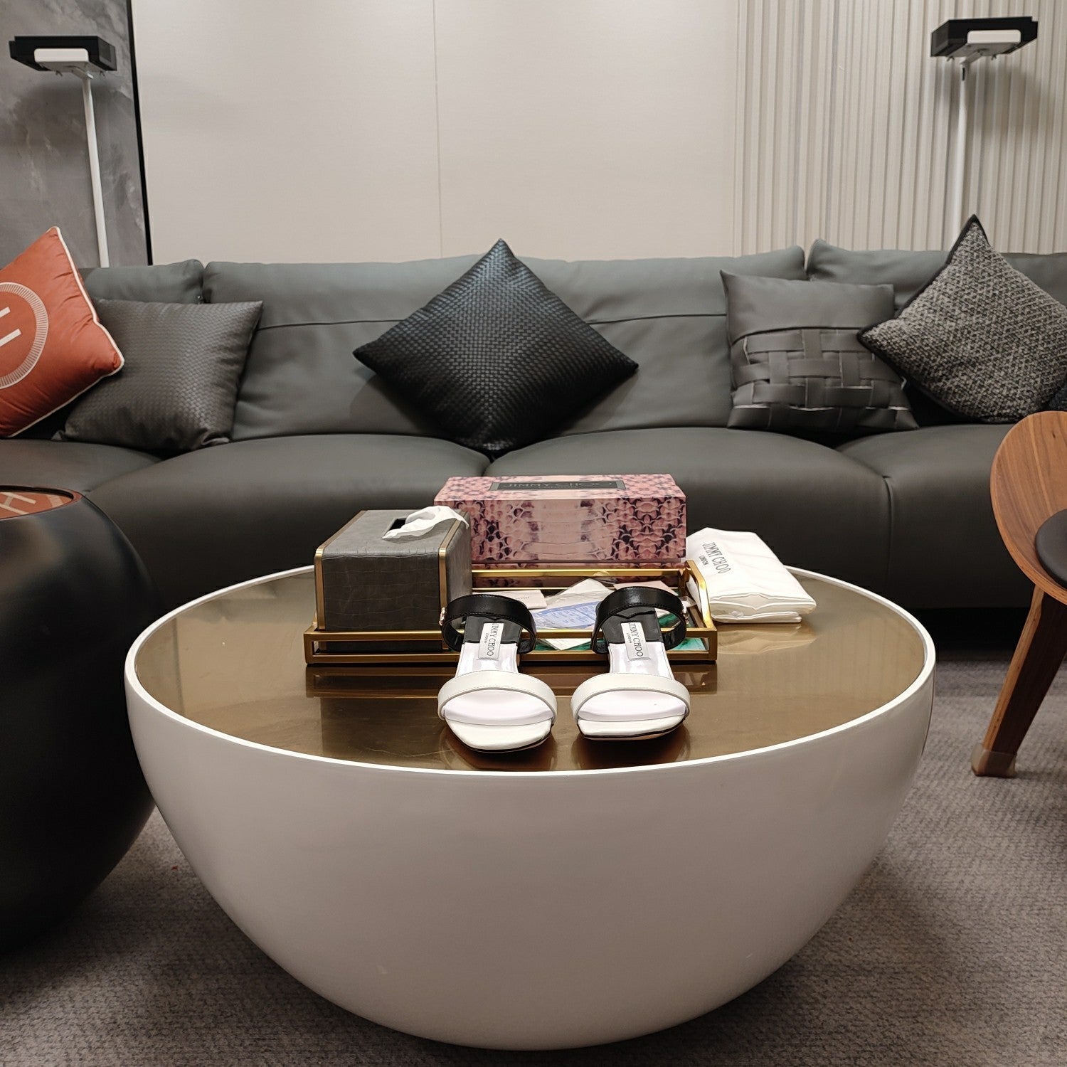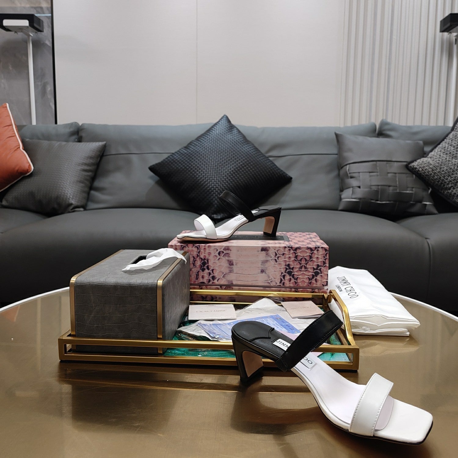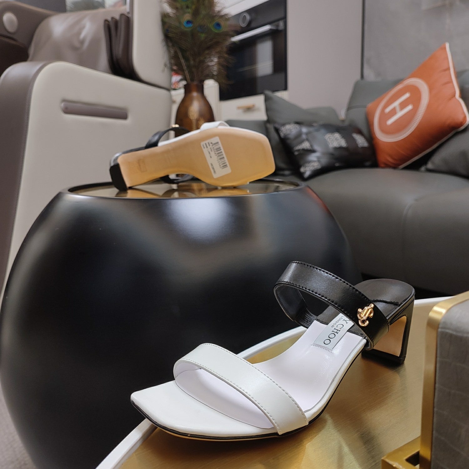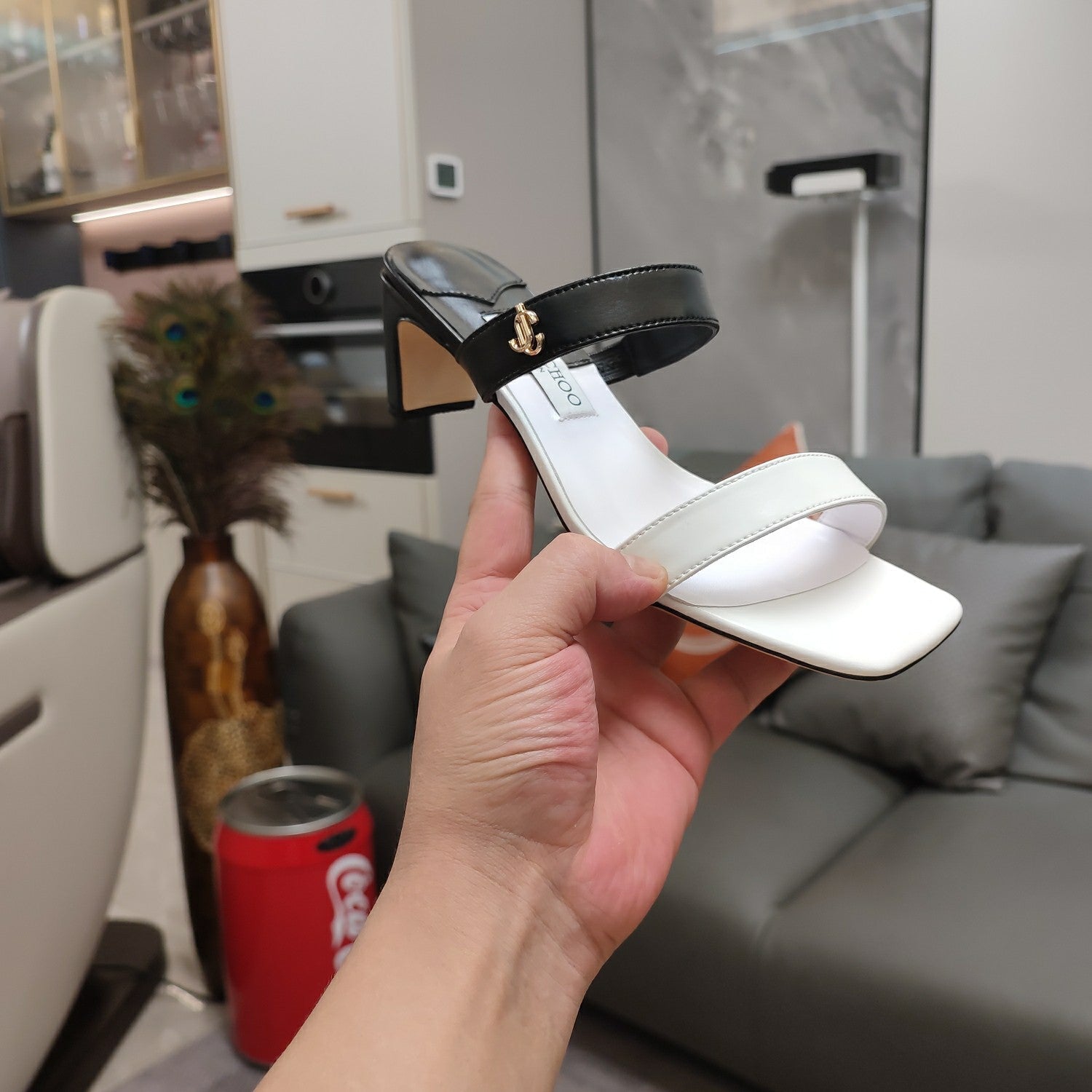 Jimmy 25 Kyda Nappa Sandals 55MM White mix Black Leather 240106