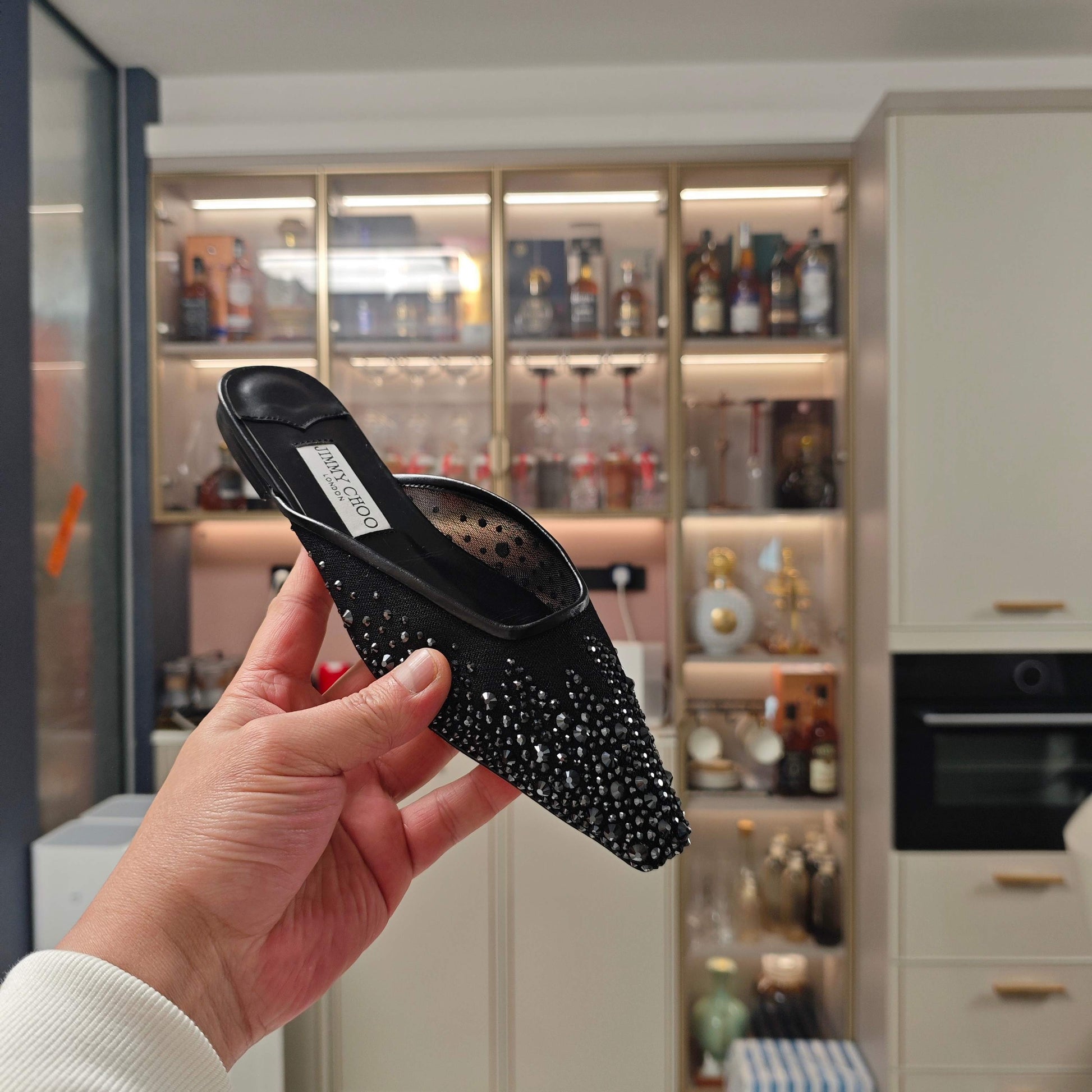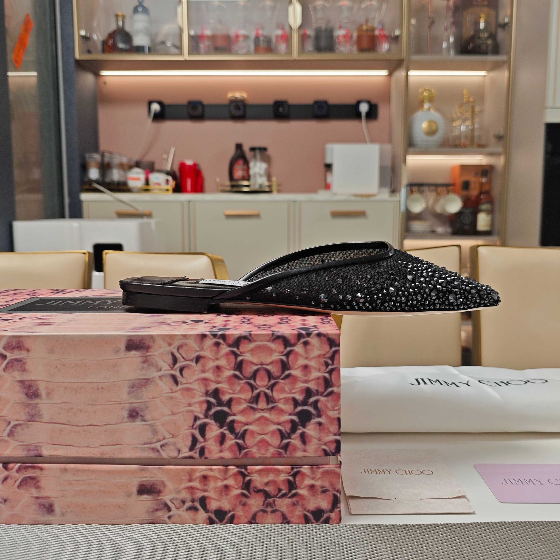 Jimmy 25 Mule Flats Black Mesh Gauze 240055