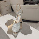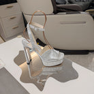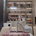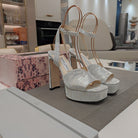 Jimmy 25 Platform Sandal Heels Silver Satin Fabric 240016