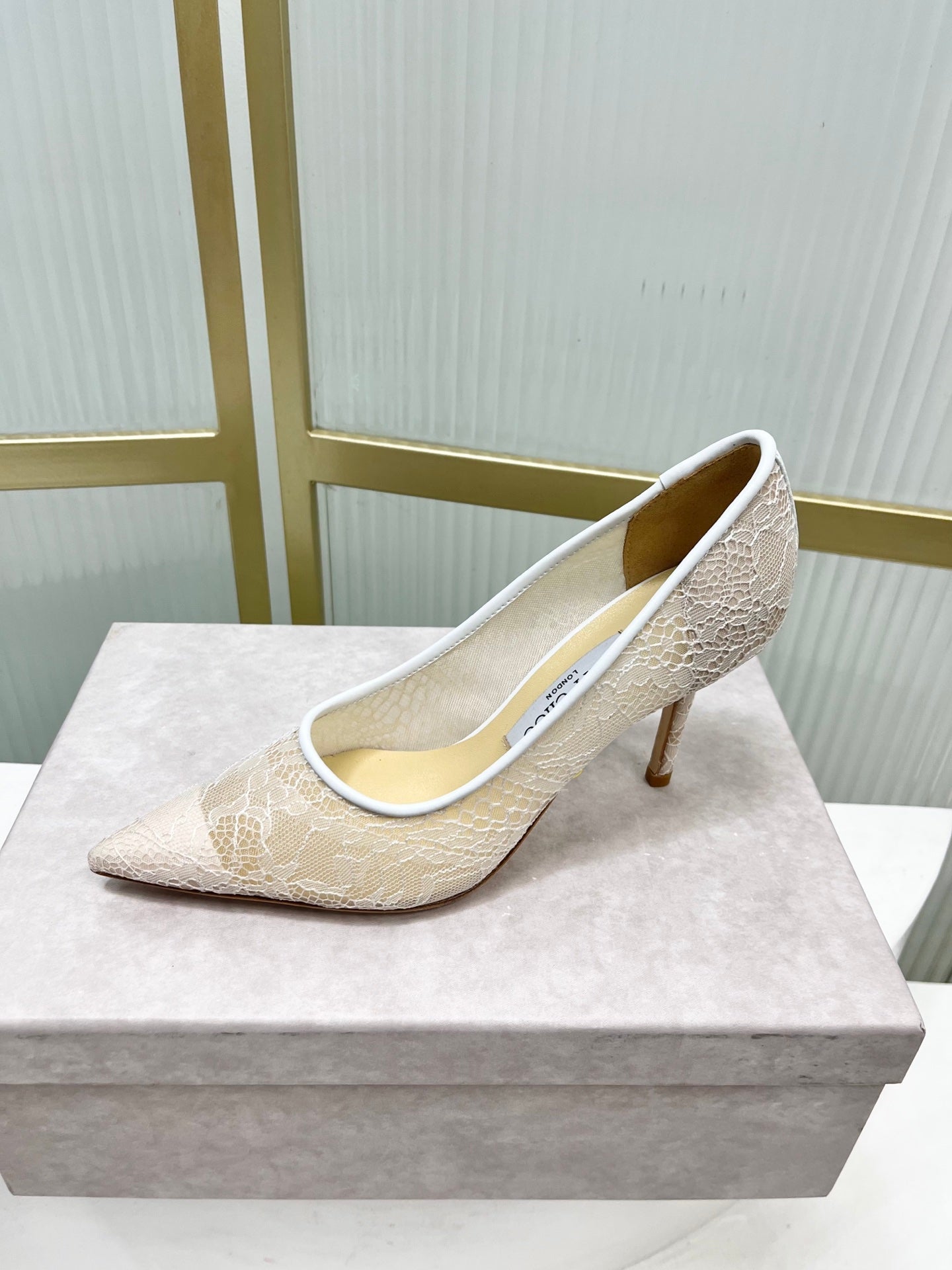 Jimmy 26s Heel Pump 85 White Beige Lace Sheepskin 605960
