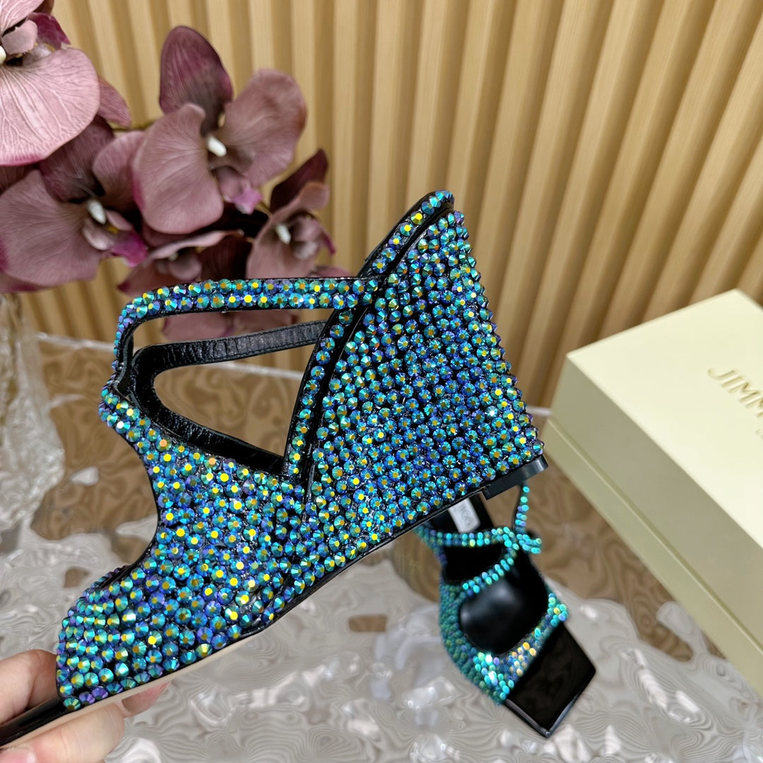 Jimmy Anise 105mm In Dark Green Pearl Studded Lambskin Mules 581534