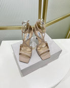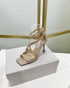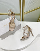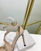 Jimmy Azia 95 In Light Beige Pink Glossy Cowhide Sandals 587703