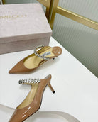 Jimmy Bing 65mm In Dark Beige Glossy Cowhide Mules 587762
