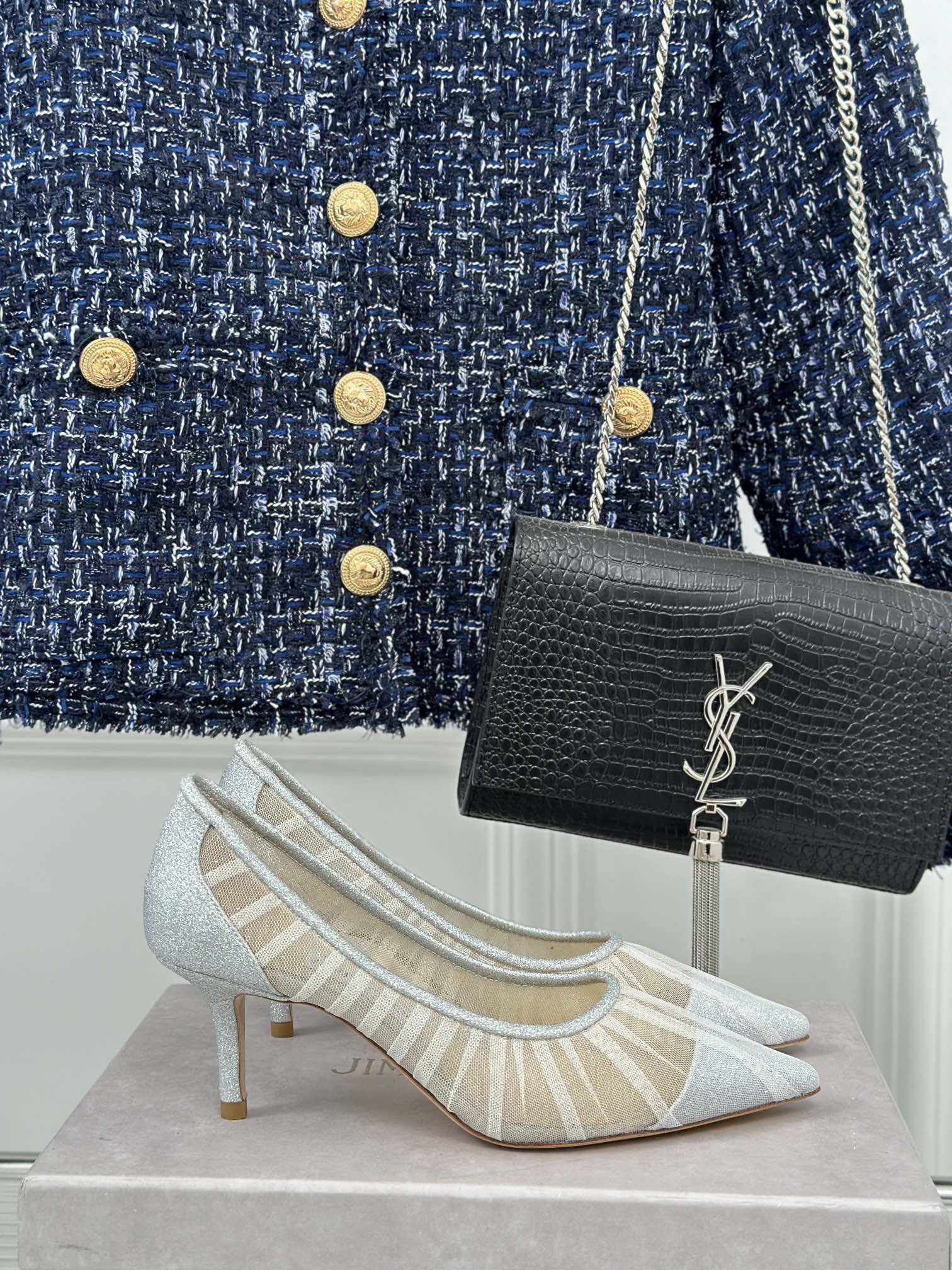 Jimmy Choo 2025 Love Pump White Mesh Leather