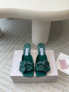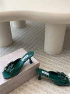 Jimmy Skye 70mm In Dark Green Cowhide Mules 586566