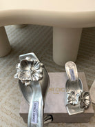 Jimmy Skye 70mm In Silver Cowhide Mules 586565