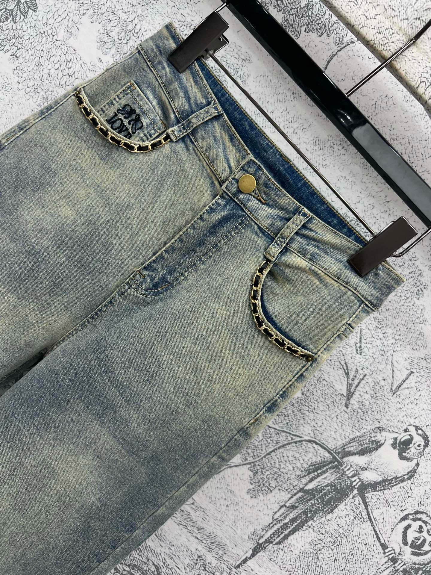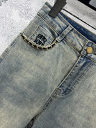Joewe 25 Chain-decorated Jeans Blue Cotton Fabric