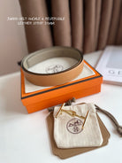 JUMBO BELT GOLD BUCKLE & REVERSIBLE CAMEL BROWN AND ORANGE LEATHER STRAP 32MM