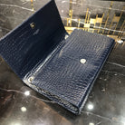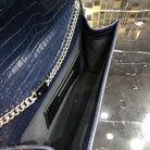 KATE TASSEL 24 IN NAVY BLUE CROCODILE PATTERN CALFSKIN SILVER HARDWARE