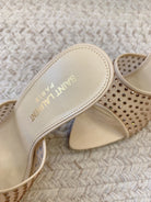 LA 16 HEELED MULES ATTACHED RHINESTONES IN CREAM MESH