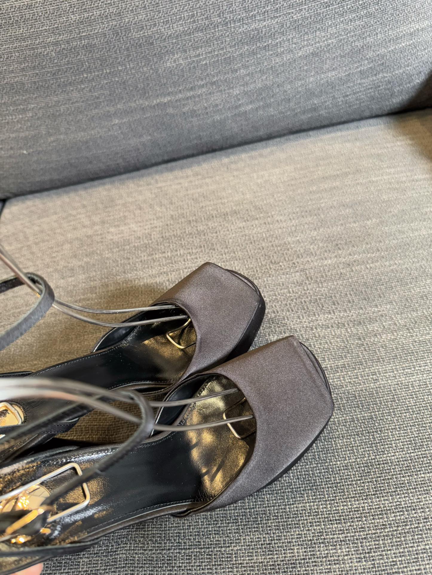 LA SCANDALE PLATFORM SANDALS IN TAUPE BROWN SATIN