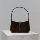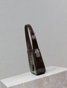 LE 5 À 7 MINI BAG 19 IN CHOCOLATE PATENT CALFSKIN GOLD LOGO