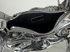LE CAGOLE SMALL SHOULDER BAG 26 WITH RHINESTONES IN SILVER METALLIC ARENA LAMBSKIN
