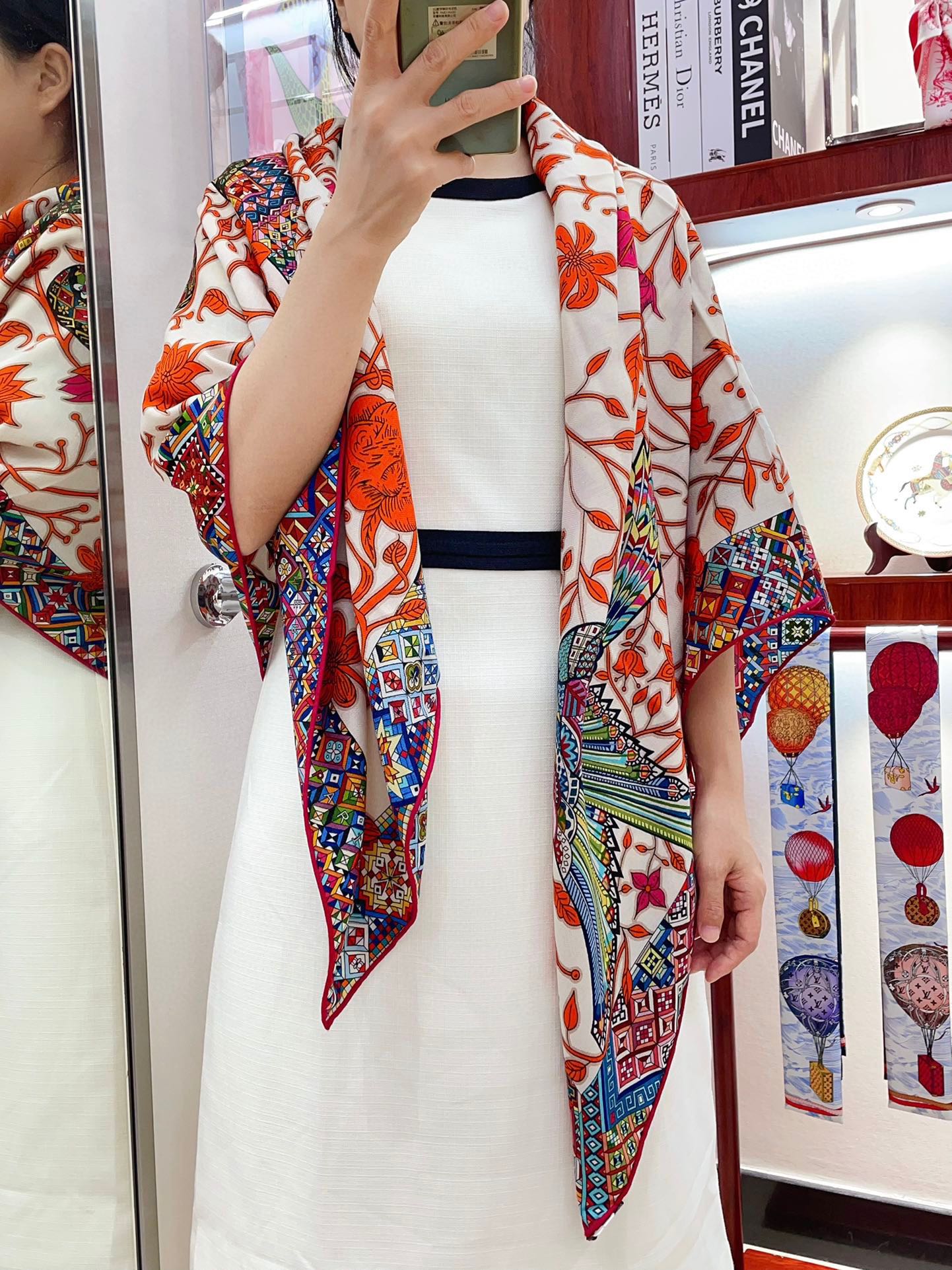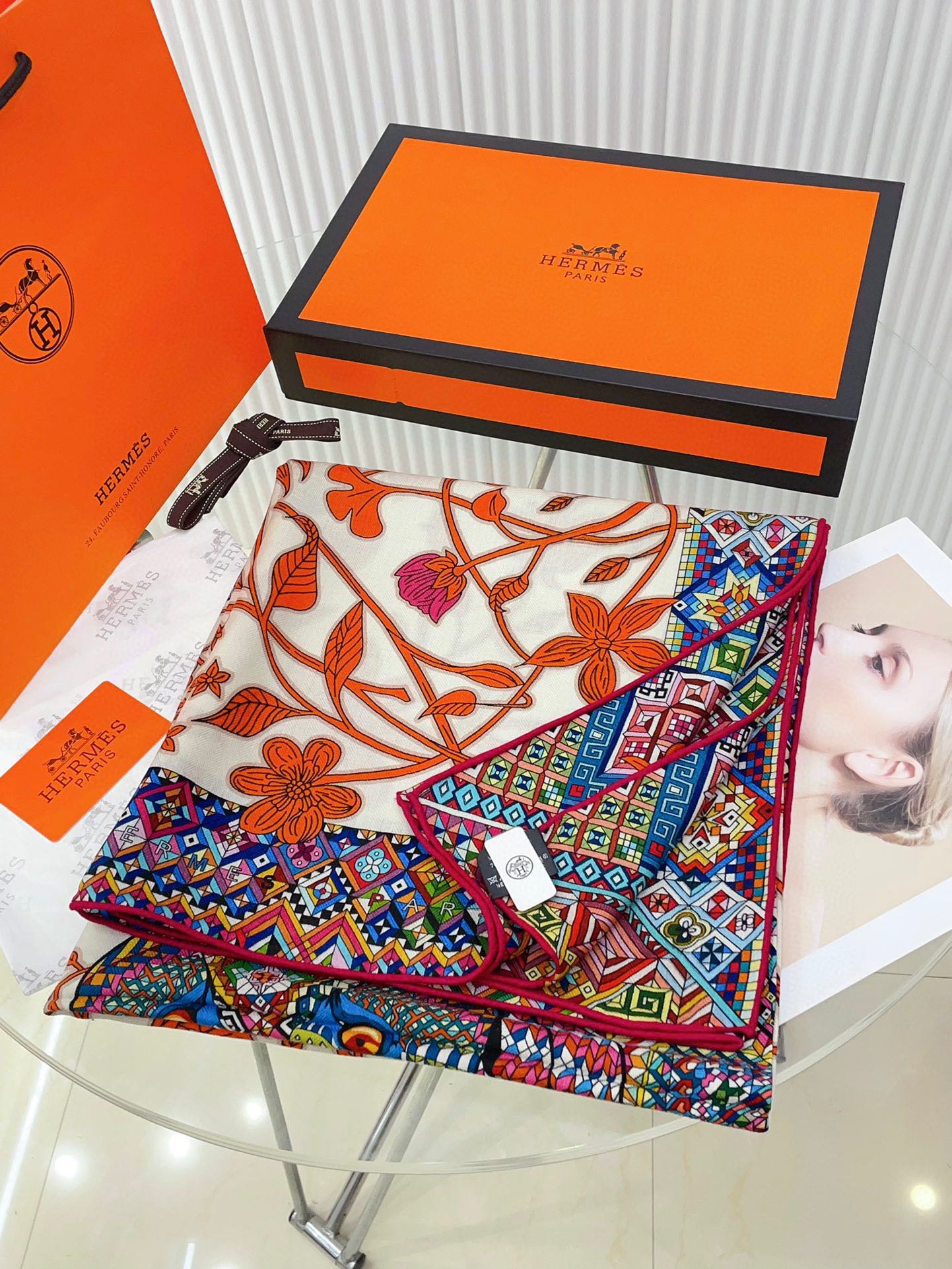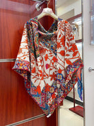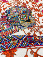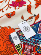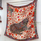 Le Jaguar Et Le Colibri Shawl 135 CM Red Colorful Cashmere And Silk 357904