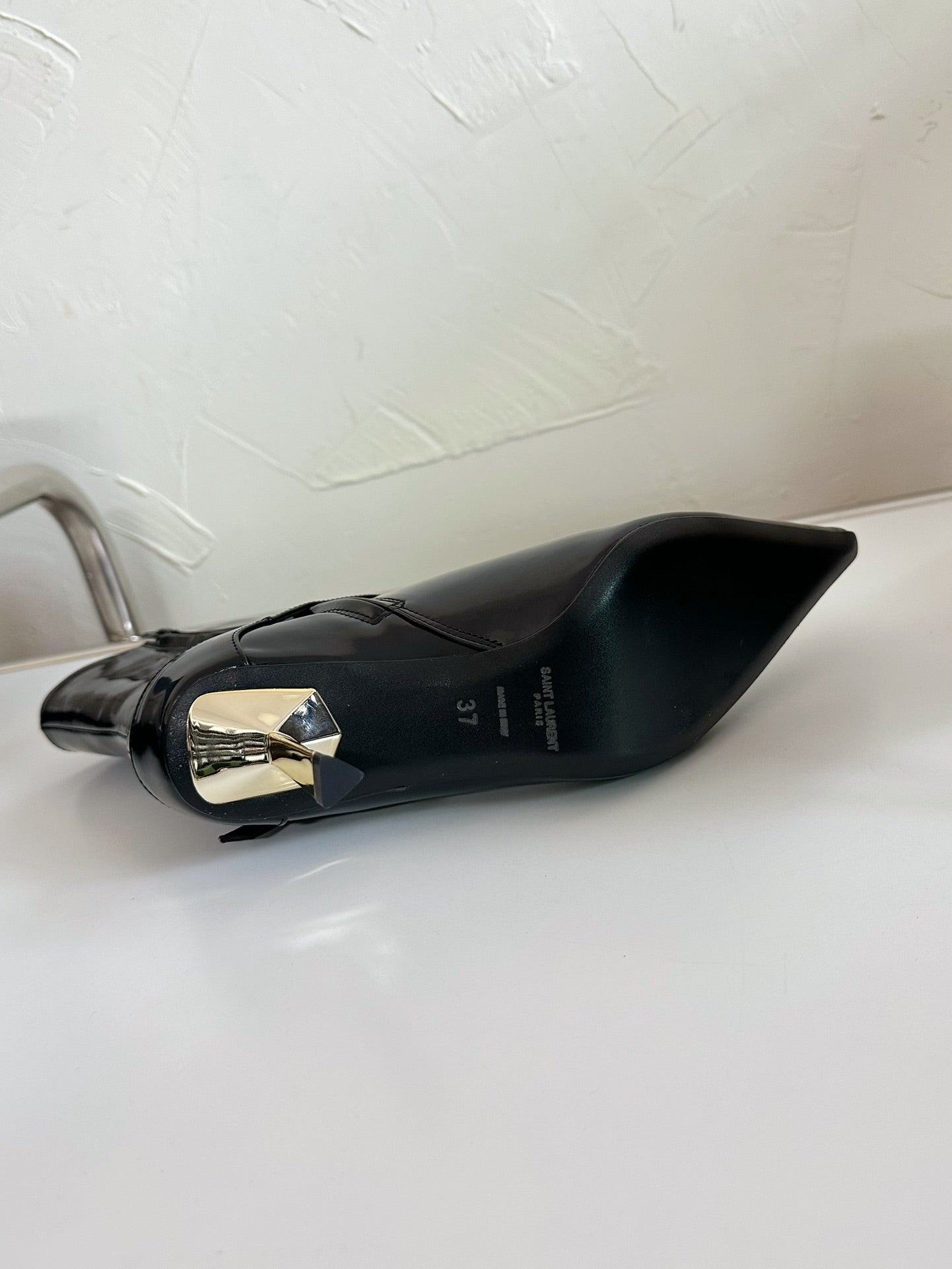 LEE BOOTIES IN BLACK GLAZED CALFSKIN
