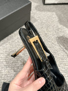 LEE SLINGBACK MID PUMPS IN BLACK CROCODILE SHINY CALFSKIN