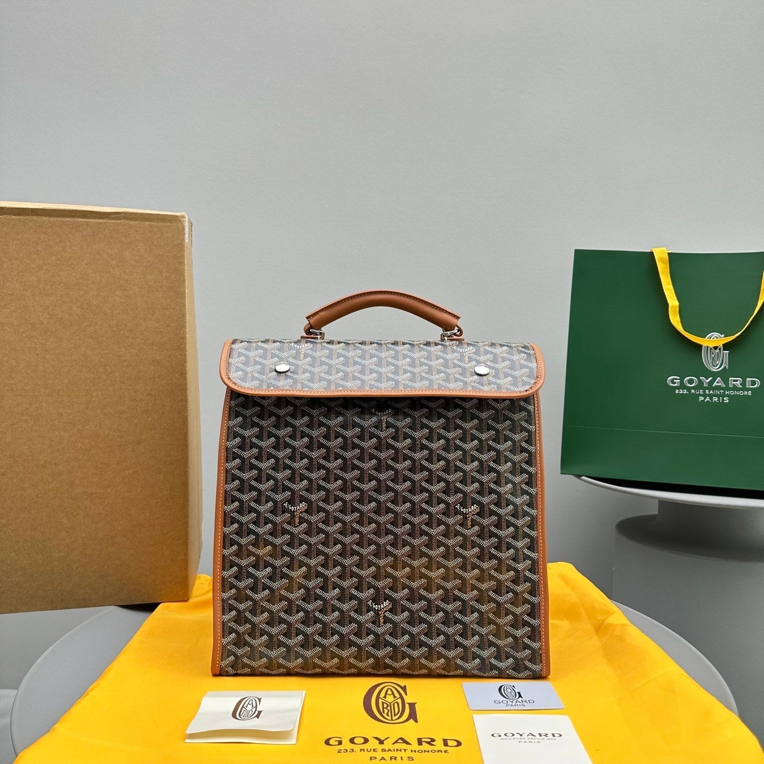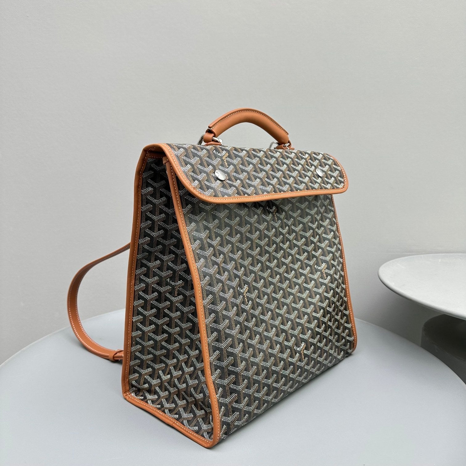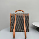LEGER BACKPACK 37 IN BLACK GOYARDINE CANVAS WITH TAN CALFSKIN TRIM