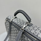 LEGER BACKPACK 37 IN GRAY GOYARDINE CANVAS WITH CALFSKIN TRIM