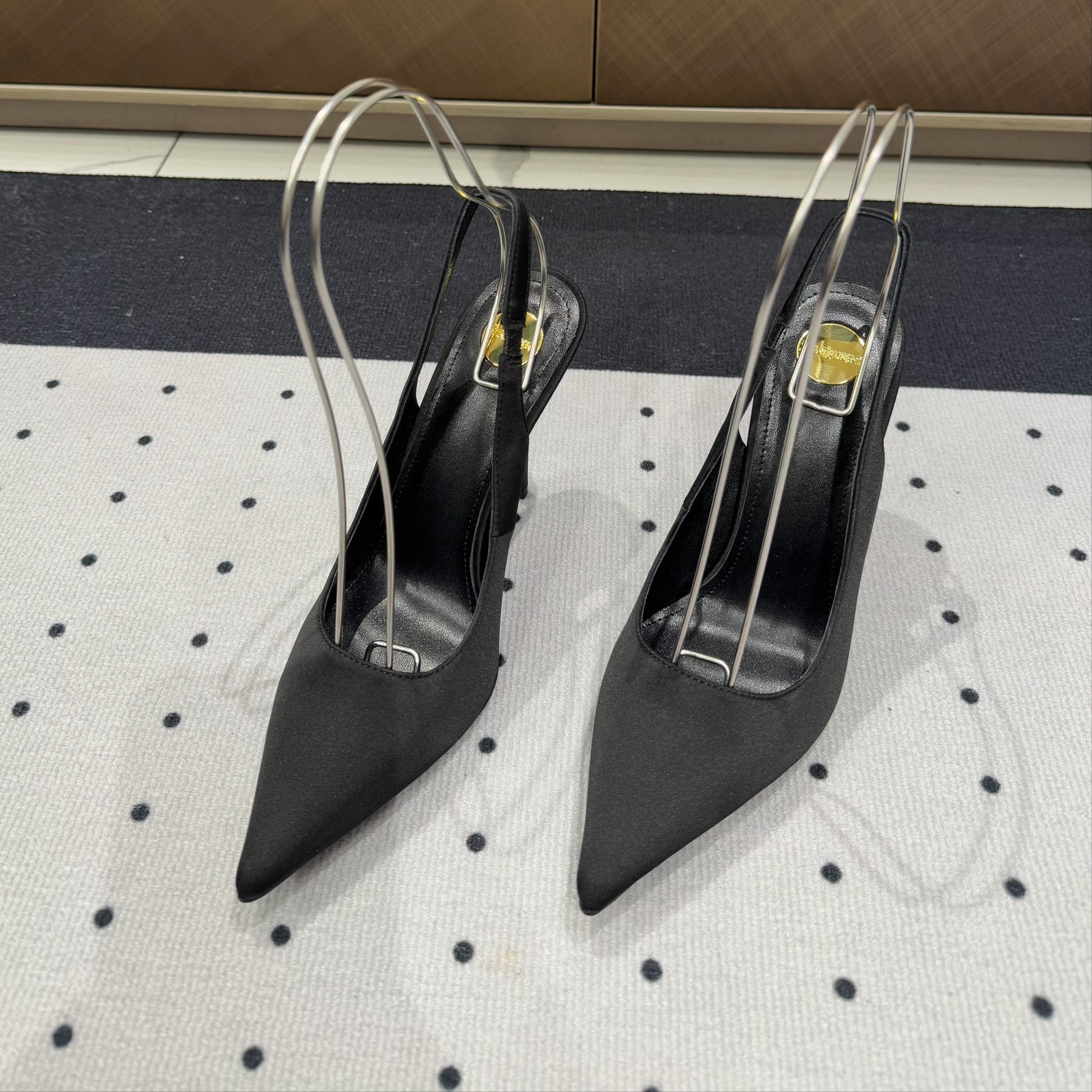 L'ENTRACTE SLINGBACK PUMPS IN BLACK SATIN