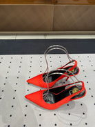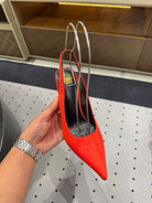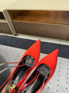 L'ENTRACTE SLINGBACK PUMPS IN RED SATIN